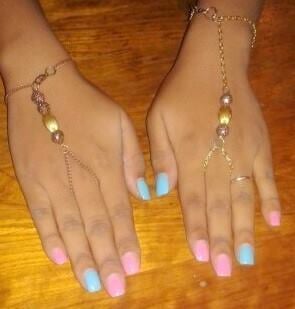 This is a all in one bracelet an ring . There are so many design that we can create for this look. This item can be custom made.