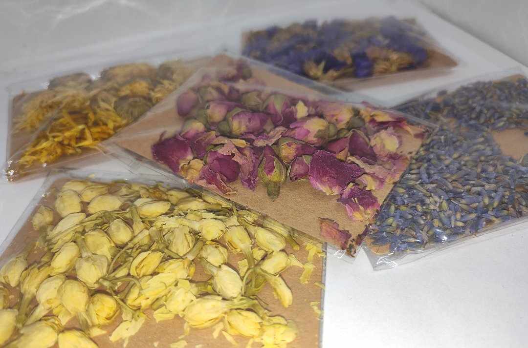 Rose petals ..Lavender .. lily .. marigold Good for baths .lotions .candle mixers