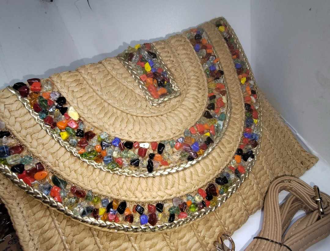 Straw or Hemp cross body bags embroidery of stones or crystals . Customization available