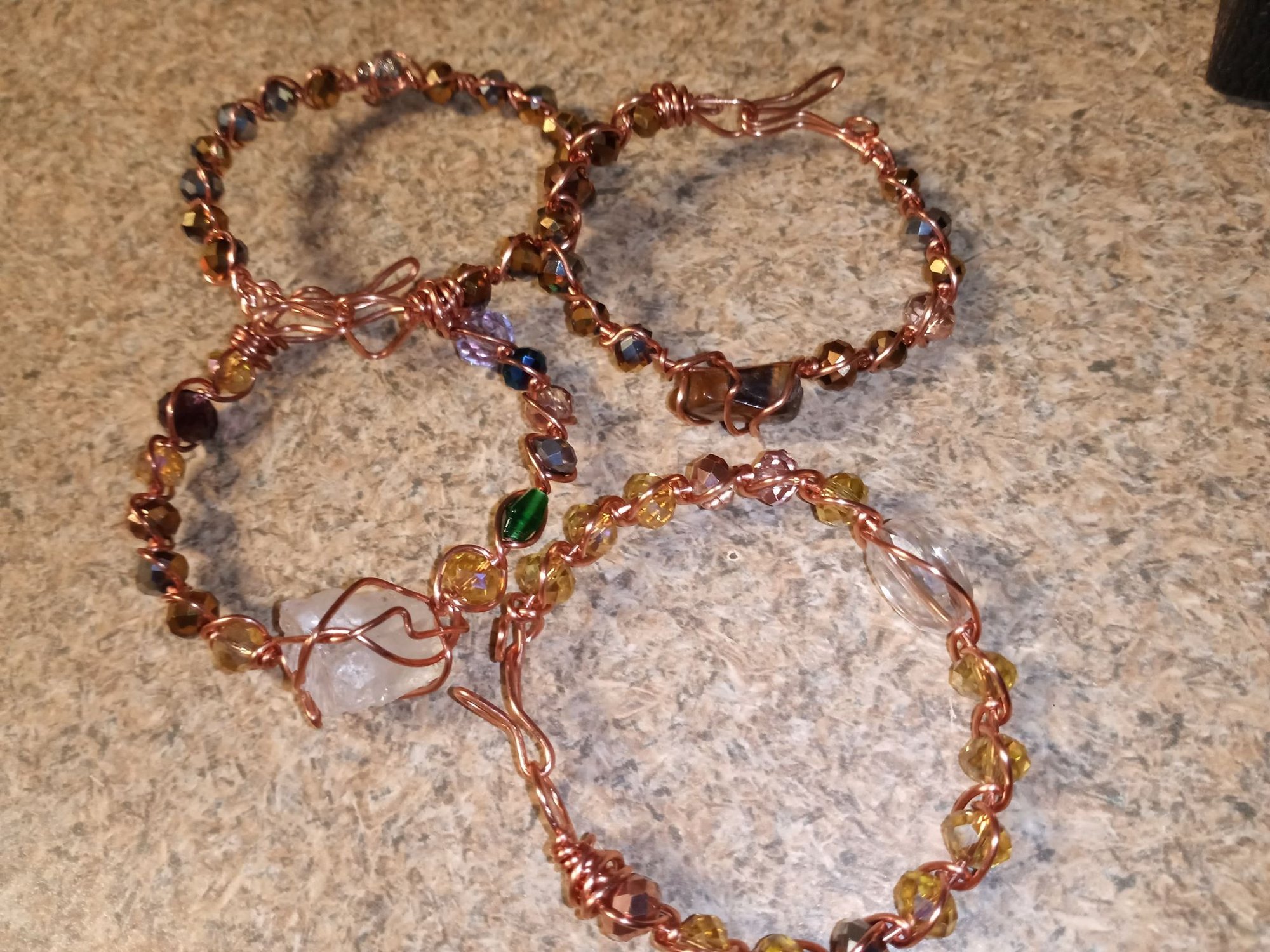 100% Copper Wire Wrapped Bracelet adornment . With added Crystal Beading with stone.